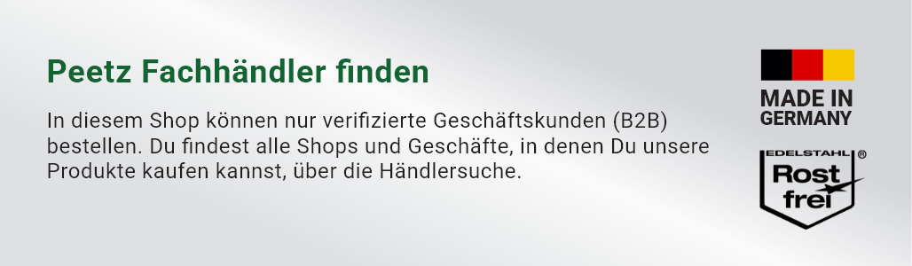 Peetz Reitsport Shop ist ein B2B-Shop. Unter Händlersuche finden Sie Händler in Ihrer Umgebung. Wünschen Sie fachkundige Beratung, freuen wir uns über Ihre E-Mail oder Ihren Anruf Montags bis Donnerstags von 8 bis 16 Uhr sowie Freitags von 8 bis 14 Uhr unter der Telefonnummer 02903/6362.