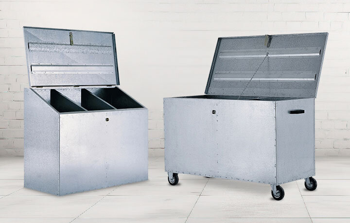 Futterkisten und Futterwagen aus verzinktem Stahlblech mit wahlweise zwei oder drei Fächern sind ideal für die ordentliche und hygienische Aufbewahrung von Futtermitteln und Futterzubehör im Stall, auf der Koppel oder in der Reithalle. Futterunterschränke mit einer großen Lade schützen das Futter optimal und lassen sich zur Sicherheit abschließen.